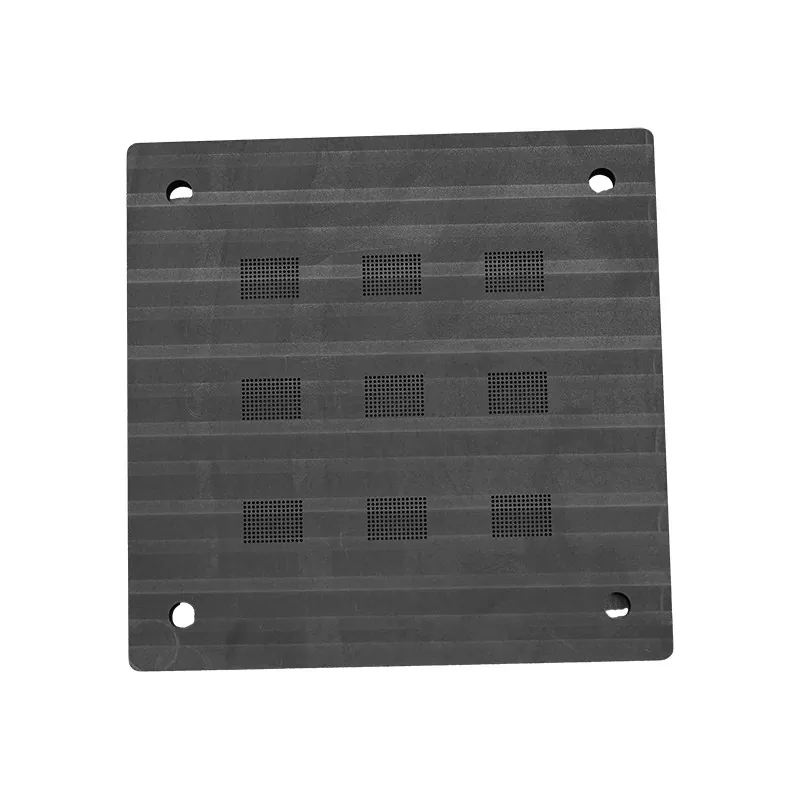 Grafitkulaplaceringsfixturer har flera nyckelfunktioner: 1) Hög renhet (grafit ≥99,5 %, fri från jonkontamination); 2) Hög planhet (planhet ≤0,002 mm/m, Ra≤0,4 μm); 3) Kulplaceringsprecision på mikronnivå (kuldiameter ±0,025 mm, kulavstånd ±0,05 mm); 4) Hög temperaturbeständighet (stabil prestanda vid 300°C); 5) Utmärkt värmehantering (likformig värmeledningsförmåga, reducerad värmespänning).